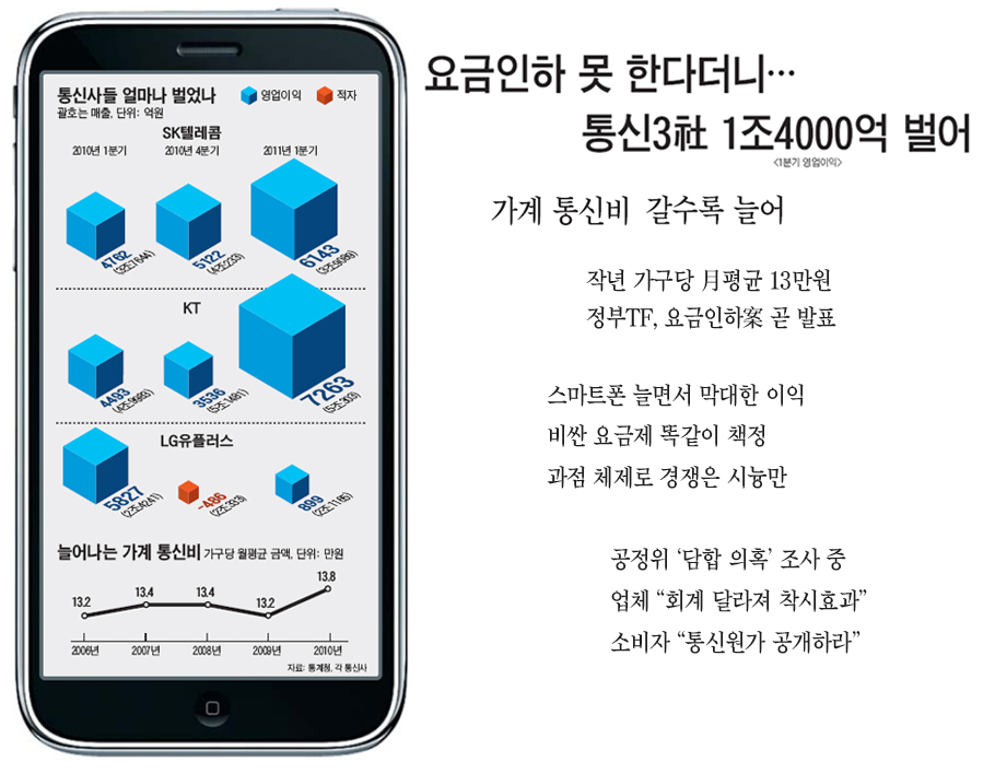 Åë½Å»çµéÀº "Åë½Åºñ°¡ ºñ½Î¸é »ç¿ë·®À» ÁÙÀ̵çÁö, ¾È ¾²¸é µÇÁö ¾Ê´À³Ä"°í ¹è¯À» ƨ±ä´Ù. Åë½Å Á֯ļö¸¦ µ¶Á¡Çϰí ÀÖ´Â µ¥ µû¸¥ ÀڽۨÀÌ´Ù. ¿ä±ÝÀÌ ½Ñ ȸ»ç¸¦ ÅÃÇÏ·Á°í ÇØµµ ¼¼ ȸ»ç ¿ä±Ý ¼öÁØÀÌ ºñ½ÁÇØ ¼ÒºñÀÚµé·Î¼´Â ¼±ÅÃÀÇ ¿©Áö°¡ ¾ø´Ù. À¯¼±ÀüÈ¡¤Ãʰí¼ÓÀÎÅͳݡ¤IPTV(ÀÎÅͳÝTV) µî ´Ù¸¥ Åë½Å ¼ºñ½ºµµ ¸¶Âù°¡Áö´Ù. ¢º ±â»ç ´õ ÀÚ¼¼È÷ º¸±â