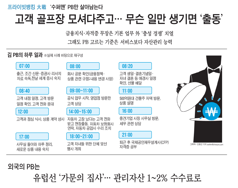 ¡ã AÁõ±Ç»ç¿¡¼ ÀÏÇÏ´Â ¾î´À PB(ÇÁ¶óÀ̺ø ¹ðÄ¿¡¤°Å¾× Àڻ갡¸¦ »ó´ëÇϸç ÅõÀÚ¸¦ Á¶¾ðÇØÁÖ´Â ±ÝÀ¶ÀÎ)´Â 60´ë °í°´ÀÌ °ñÇÁ¸¦ Ä¡·¯ °¥ ¶§ ¿îÀüÀ» ÇØÁÖ°ï ÇÑ´Ù. Ƽ¿ÀÇÁ ½Ã°£ÀÎ »õº®¿¡ °æ±âµµ °ñÇÁÀå¿¡ °í°´À» Å¿öÁÖ°í ¼¿ï·Î µ¹¾Æ¿Â µÚ, °ÔÀÓÀÌ ³¡³¯ ¹«·Æ ´Ù½Ã °ñÇÁÀå¿¡ °¡¼ °í°´À» Å¿ö¿Í¾ß ÇÏ´Â °íµÈ ÀÏÁ¤ÀÌÁö¸¸ ±×´Â "ÀÌ·¸°Ô °í°´°ú ½Å·Ú°¡ ½×ÀÌ¸é ¶Ç ´Ù¸¥ °í°´À» ¼Ò°³¹Þ±âµµ ÇÏ´Â µî µµ¿òÀÌ µÈ´Ù"°í ¸»Çß´Ù. ¢º ±â»ç ´õ ÀÚ¼¼È÷ º¸±â