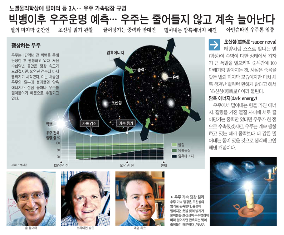 ¡ã ¿ìÁÖ´Â ÆØÃ¢Çß´Ù°¡ ÇѰ迡 ´ÞÇÑ ¾î´À ¼ø°£ ´Ù½Ã ÁÙ¾îµé °ÍÀΰ¡, ¾Æ´Ï¸é Áö¼ÓÀûÀ¸·Î ´Ã¾î³¯ °ÍÀΰ¡. ¿ÃÇØ ³ëº§ ¹°¸®Çлó ¼ö»óÀÚµéÀº ÃÖÈÄÀÇ ¼ø°£¿¡ ºûÀ» ³»¸ç ¼Ò¸êÇÏ´Â º°À» °üÃøÇØ õü¹°¸®ÇаèÀÇ ¿À·£ Àǹ®À¸·Î ³²¾Æ ÀÖ´ø µÎ °¡¼³ Áß ¿ìÁÖ°¡ Á¡Á¡ ´õ »¡¸® ÆØÃ¢ÇÏ´Â °ÍÀÌ Áø½ÇÀ̶ó´Â °ÍÀ» ¹àÇô³Â´Ù. ¢º ±â»ç ´õ ÀÚ¼¼È÷ º¸±â