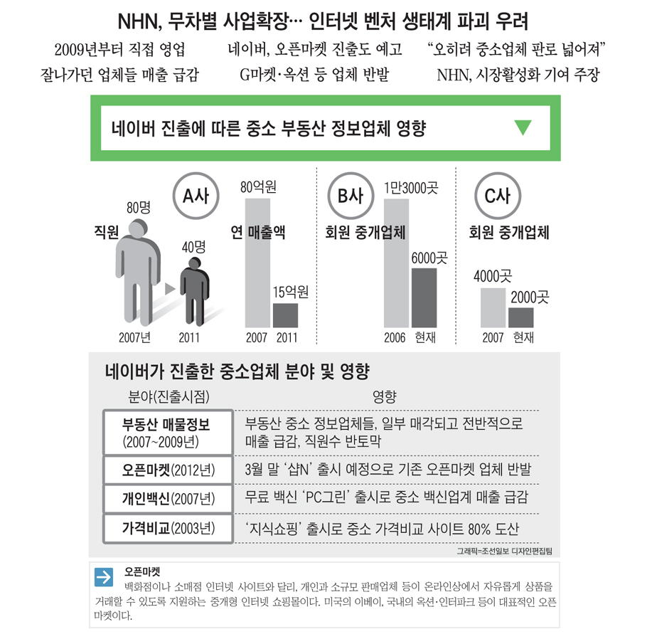 ¡ã ³×À̹ö°¡ ºÎµ¿»ê Á¤º¸»ç¾÷¿¡ ÁøÃâÇÏ¸é¼ Àß³ª°¡´ø ºÎµ¿»ê Á¤º¸¾÷ü°¡ ¸Å°¢µÇ°Å³ª ¸ÅÃâÀÌ 5ºÐÀÇ 1Å丷±îÁö ³µ´Ù. 7~8°÷¿¡ ´ÞÇÏ´ø °¡°Ýºñ±³ »çÀÌÆ® ½ÃÀå¿¡¼´Â '¿¡´©¸®´åÄÄ'°ú '´Ù³ª¿Í'¸¦ Á¦¿ÜÇÑ ³ª¸ÓÁö°¡ »ç½Ç»ó ¹®À» ´Ý°Å³ª ¸ÅÃâÀÌ ±Þ°¨Çß´Ù. Àü¹®°¡µéÀº ÀÎÅÍ³Ý º¥Ã³ »ýŰèÀÇ ¸í¸ÆÀÌ ²÷¾îÁø´Ù°í ¿ì·ÁÇÑ´Ù. ¢º ±â»ç ´õ ÀÚ¼¼È÷ º¸±â