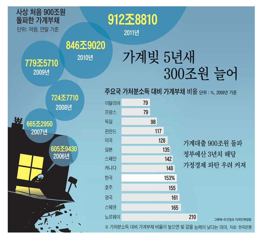 ¡ã °¡°è ´ëÃâÀÌ »ç»ó óÀ½À¸·Î 900Á¶¿ø(2011³â ¸» ±âÁØ)À» µ¹ÆÄÇß´Ù. ¿ì¸®³ª¶ó Á¤ºÎ ¿¹»ê(325Á¶¿ø)ÀÇ 3³âÄ¡¿¡ ÇØ´çÇÏ´Â ¾×¼ö´Ù.