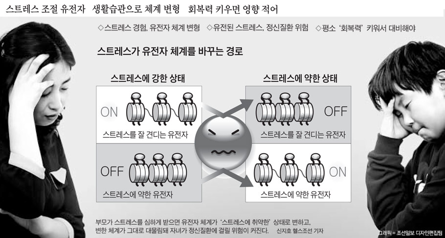 ¡ã ½ºÆ®·¹½º¸¦ ½ÉÇÏ°Ô ¹ÞÀ¸¸é À¯ÀüÀÚ¿¡ ¿µÇâÀ» ¹ÌÄ¡¸ç, º¯ÇüµÈ À¯ÀüÀÚ Ã¼°è°¡ Àڽĵ鿡°Ô ´ë¹°¸²µÅ Á¤½ÅÁúȯ¿¡ °É¸± À§ÇèÀÌ ³ô¾ÆÁø´Ù´Â ÁÖÀåÀÌ ÁÖ¸ñ¹Þ°í ÀÖ´Ù. º»·¡ ½ºÆ®·¹½º¿¡ Ãë¾àÇÑ ¼º°ÝÀÌ ¾Æ´Ñµ¥µµ ½ºÆ®·¹½º¸¦ ¹ÞÀº °æÇèÀÌ Á¤½ÅÁúȯ¿¡ Ãë¾àÇÑ À¯ÀüÀÚ Ã¼°è¸¦ ¸¸µé¾î³»°í, À̰ÍÀÌ Àڳ࿡°Ô Àü´ÞµÅ Àڳడ ½ºÆ®·¹½º¿¡ Ãë¾àÇÑ ¼º°ÝÀ» °¡Áú ¼ö ÀÖ´Ù´Â °ÍÀÌ´Ù. ¢º ±â»ç ´õ ÀÚ¼¼È÷ º¸±â