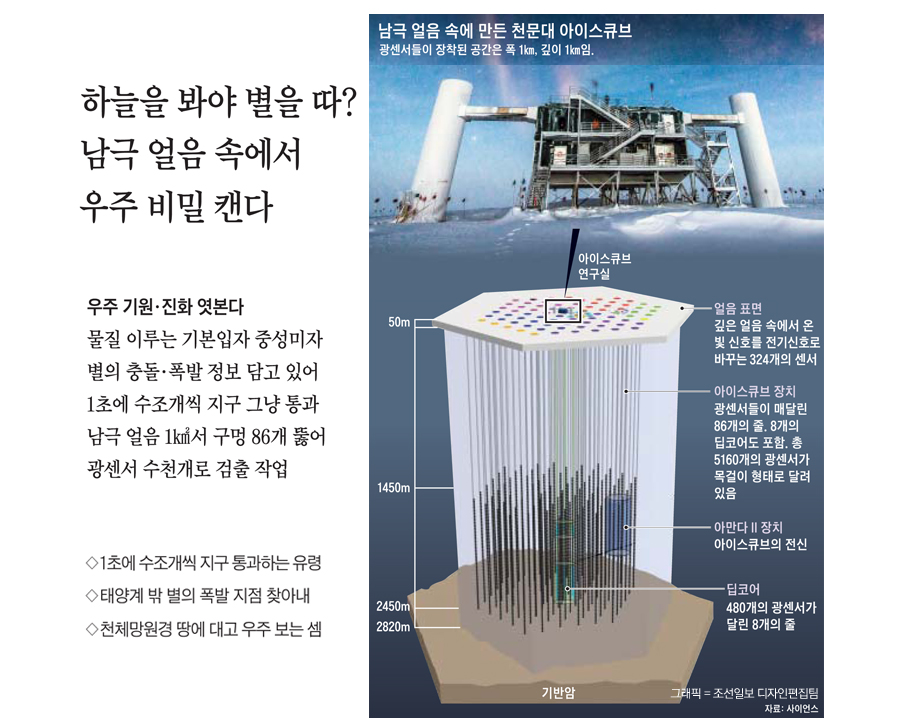 ¡ã 12°³±¹ ¹°¸®ÇÐÀÚ¿Í Ãµ¹®ÇÐÀÚ 276¸íÀ¸·Î ±¸¼ºµÈ '¾ÆÀ̽ºÅ¥ºê(IceCube)' ¿¬±¸ÁøÀº Áö³ÁÖ Å¾ç°è ¹Û¿¡¼ º°ÀÌ Æø¹ßÇÑ ÈçÀûÀ» Æ÷ÂøÇß´Ù°í ¹àÇû´Ù. ÀÌ ¿¬±¸ °á°ú´Â ¼¼°èÀûÀÎ °úÇÐÀú³Î '»çÀ̾ð½º' Ç¥Áö ³í¹®À¸·Î ½Ç·È´Ù. ¢º ±â»ç ´õ ÀÚ¼¼È÷ º¸±â
